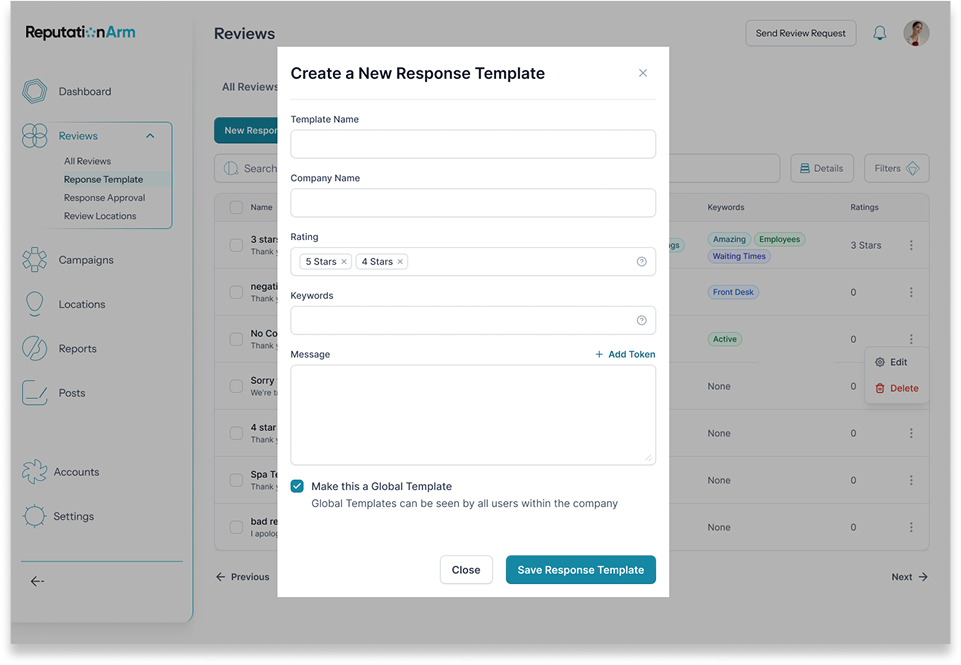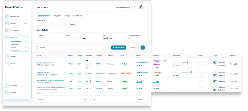 Centralized review management by location: Users can respond to, tag and analyze reviews from a single place.