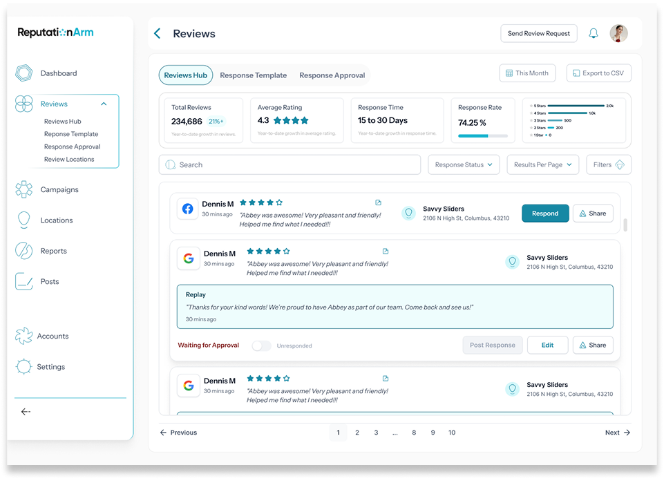 ReputationArm is an all-in-one reputation management platform for local and multi-location businesses. It helps companies verify and optimize their listings, monitor and respond to reviews across platforms, publish updates to their Google Business Profiles, and generate more reviews through automated campaigns.